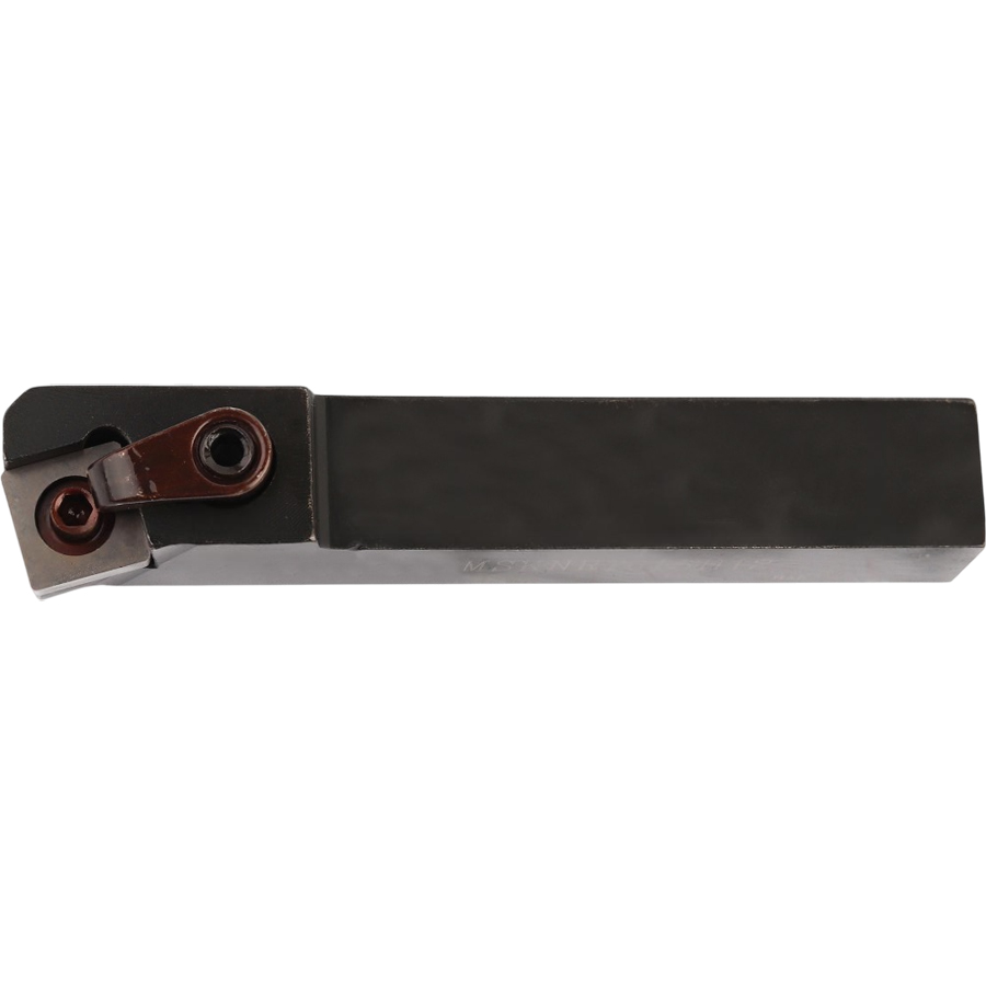 Резец токарный для наружного точения по металлу со сменными пластинами. Для пластин SN**1906**. Державка токарная с креплением типа M (прижим клин-прихватом сверху). С углом в плане 75°. Резец ЧПУ для продольного точения и подрезки торца.
