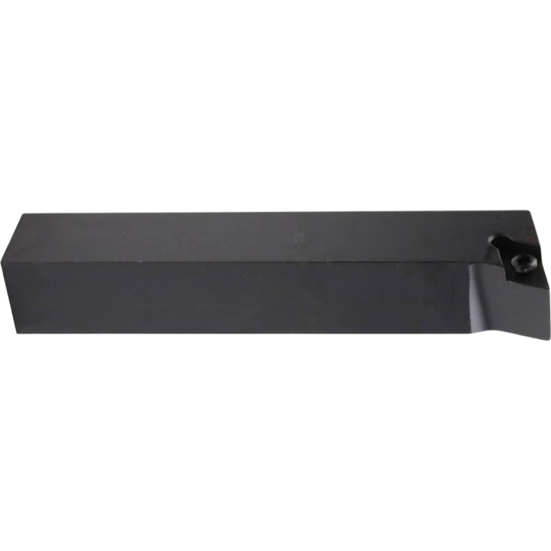 Державка токарная по металлу для наружного точения. S-прижим (винтом). Для пластин ромбической формы 55°. Форма державки - "Q" с углом в плане 107.5°. Задний угол пластины 7°. Наружное точение, профильная обработка.