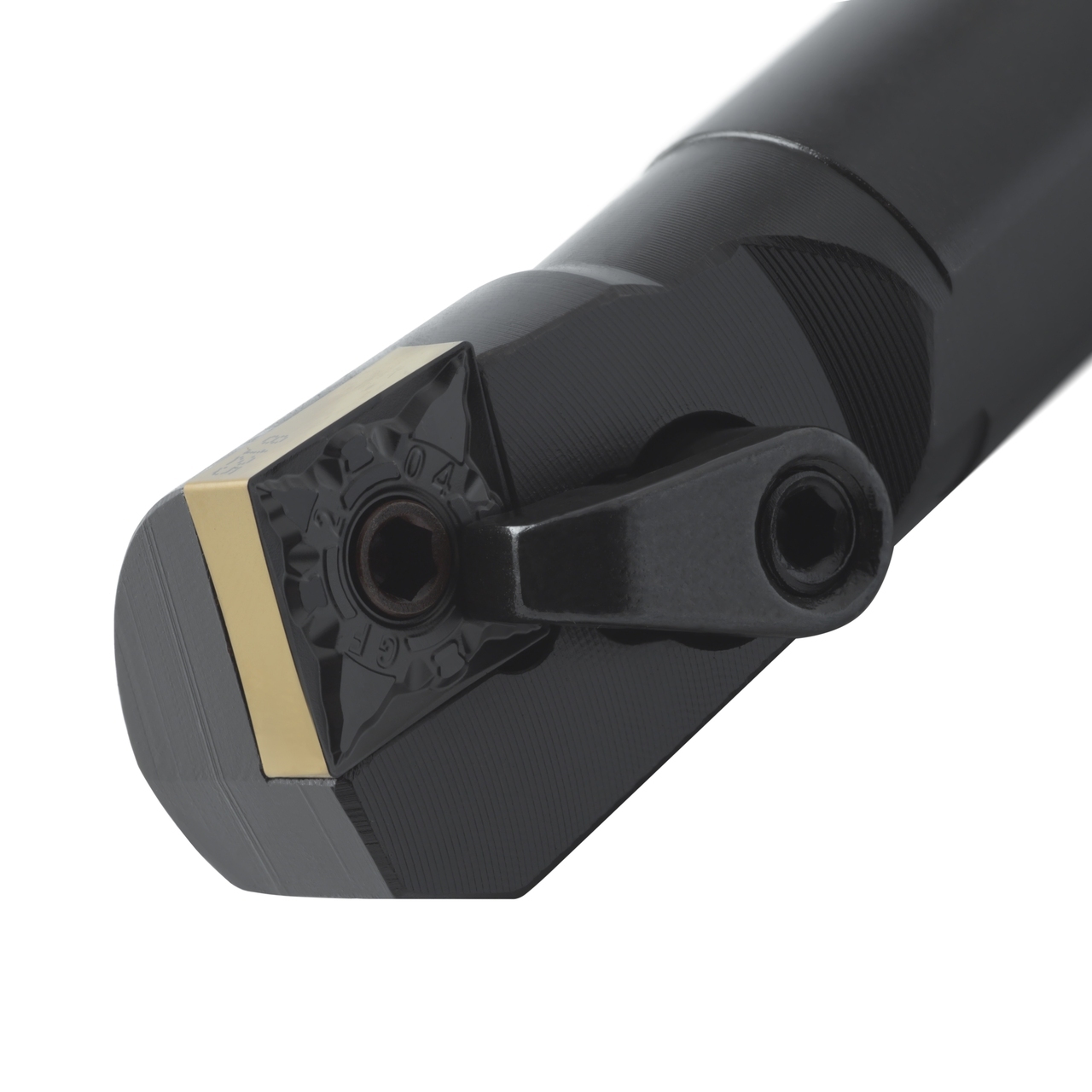 Резец токарный расточной по металлу со сменными пластинами. Для пластин CN**1204**. Державка расточная с креплением типа M (прижим клин-прихватом сверху). С углом в плане 75°.