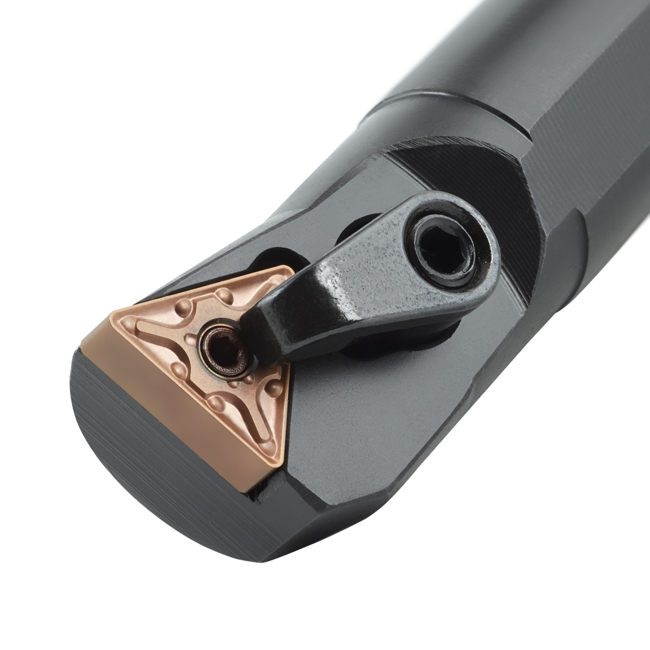 Токарная державка для внутреннего точения. Система закрепления M (прижимом сверху за пластину, пластина устанавливается на опорный штифт). Угол в плане: 93°.