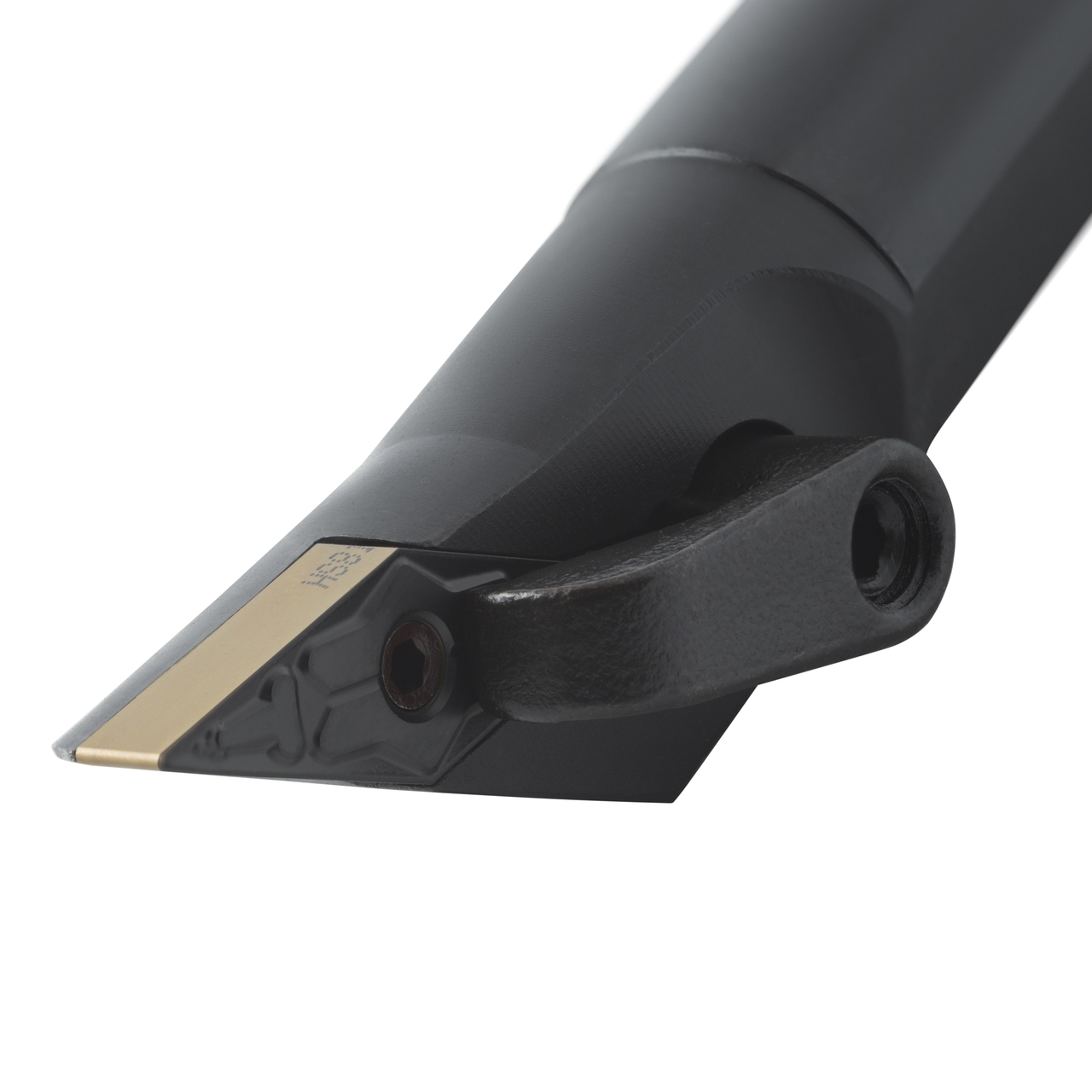 Резец токарный расточной по металлу со сменными пластинами. Для пластин VN**1604**. Державка расточная с креплением типа M (прижим клин-прихватом сверху). С углом в плане 96°. Профильная токарная обработка.