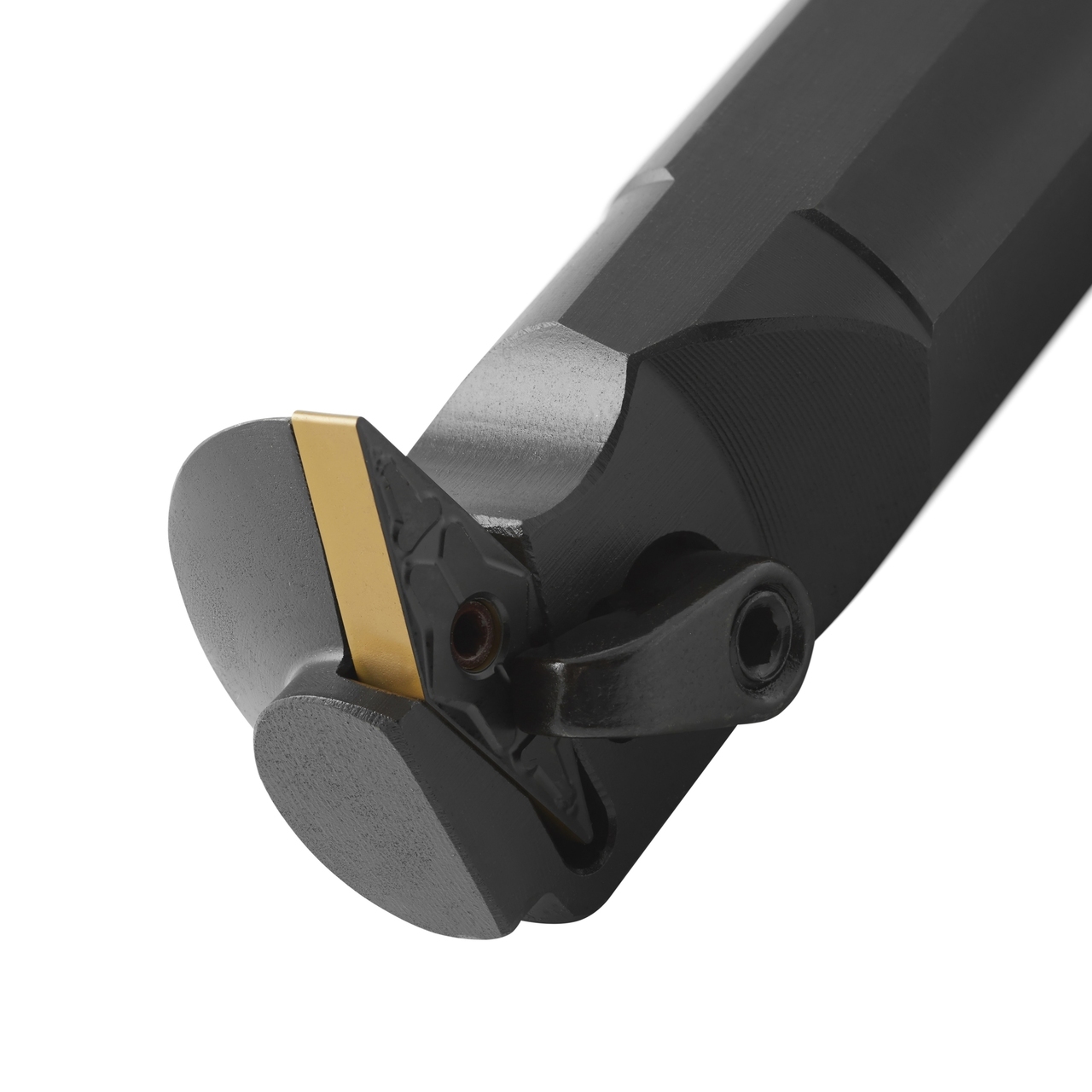 Резец расточной со сменной пластиной. Для пластин VN**1604**. Державка расточная с креплением типа M (прижим клин-прихватом сверху). С углом в плане 72°30`. Профильная токарная обработка.