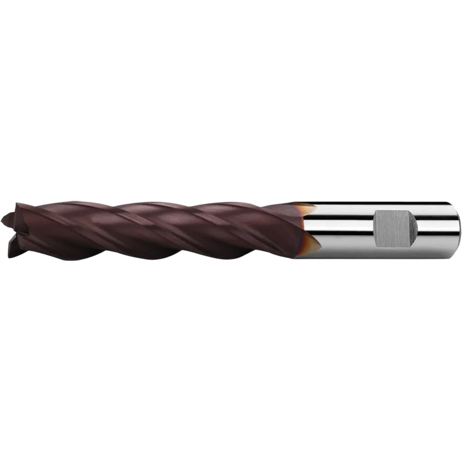 Фрезы концевые с цилиндрическим хвостовиком, длинные, с центрорежущим зубом, 30°, тип N, лыска weldon, TiAlN.
