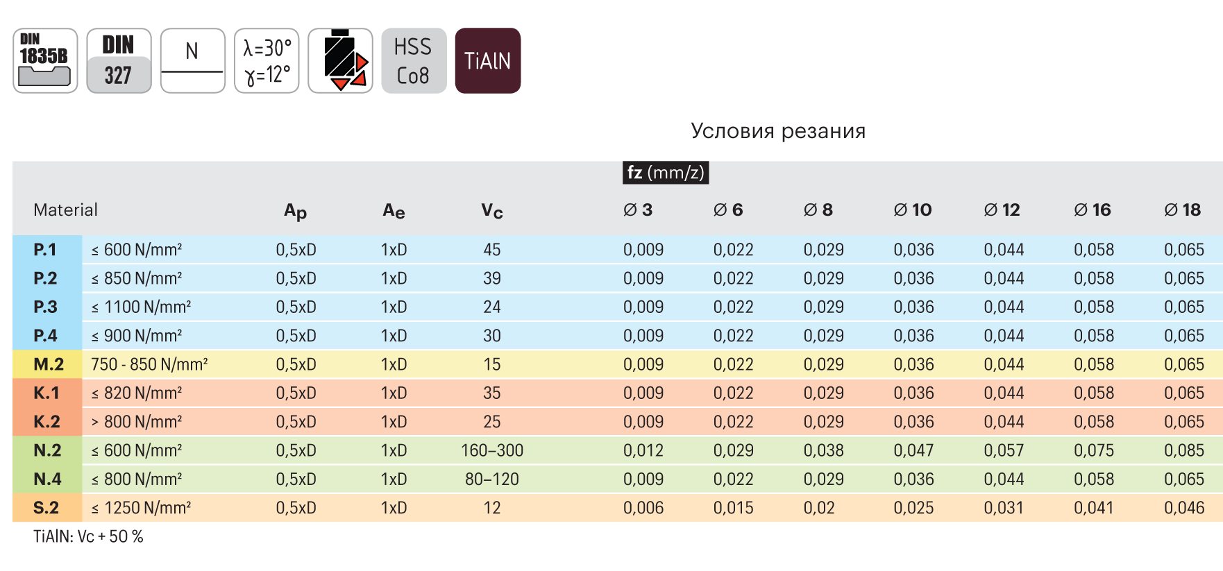 Материал заготовки, который может быть обработан наилучшим образом инструментом из сплава, рекомендованного производителем.Обрабатываемый материалPMKNS