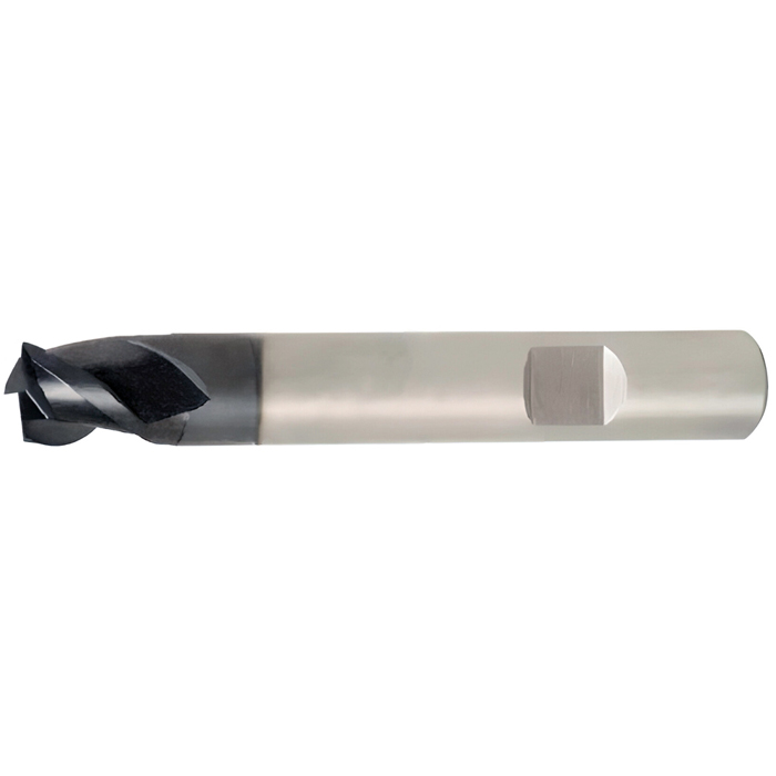 3-х зубые концевые фрезы с радиусами при вершине (по DIN 6885), угол подъема спирали 38°, укороченные, для обработки пазов и сверления.