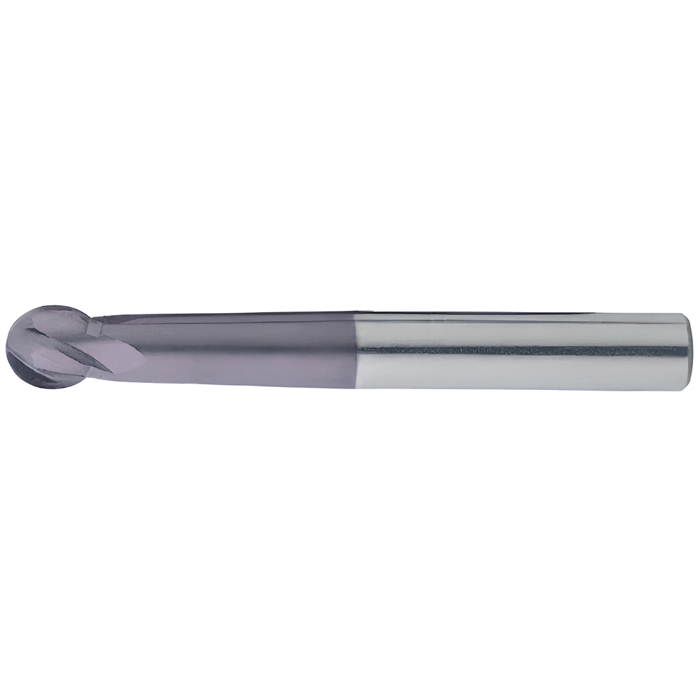 2-х зубые концевые сферические фрезы для обработки материалов твердостью до 65 HRC, угол подъема спирали 30°