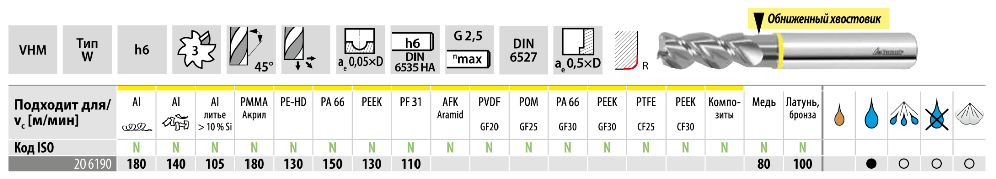 Материал заготовки, который может быть обработан наилучшим образом инструментом из сплава, рекомендованного производителем.Обрабатываемый материалN