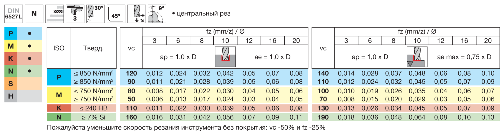 Материал заготовки, который может быть обработан наилучшим образом инструментом из сплава, рекомендованного производителем.Обрабатываемый материалPMKN