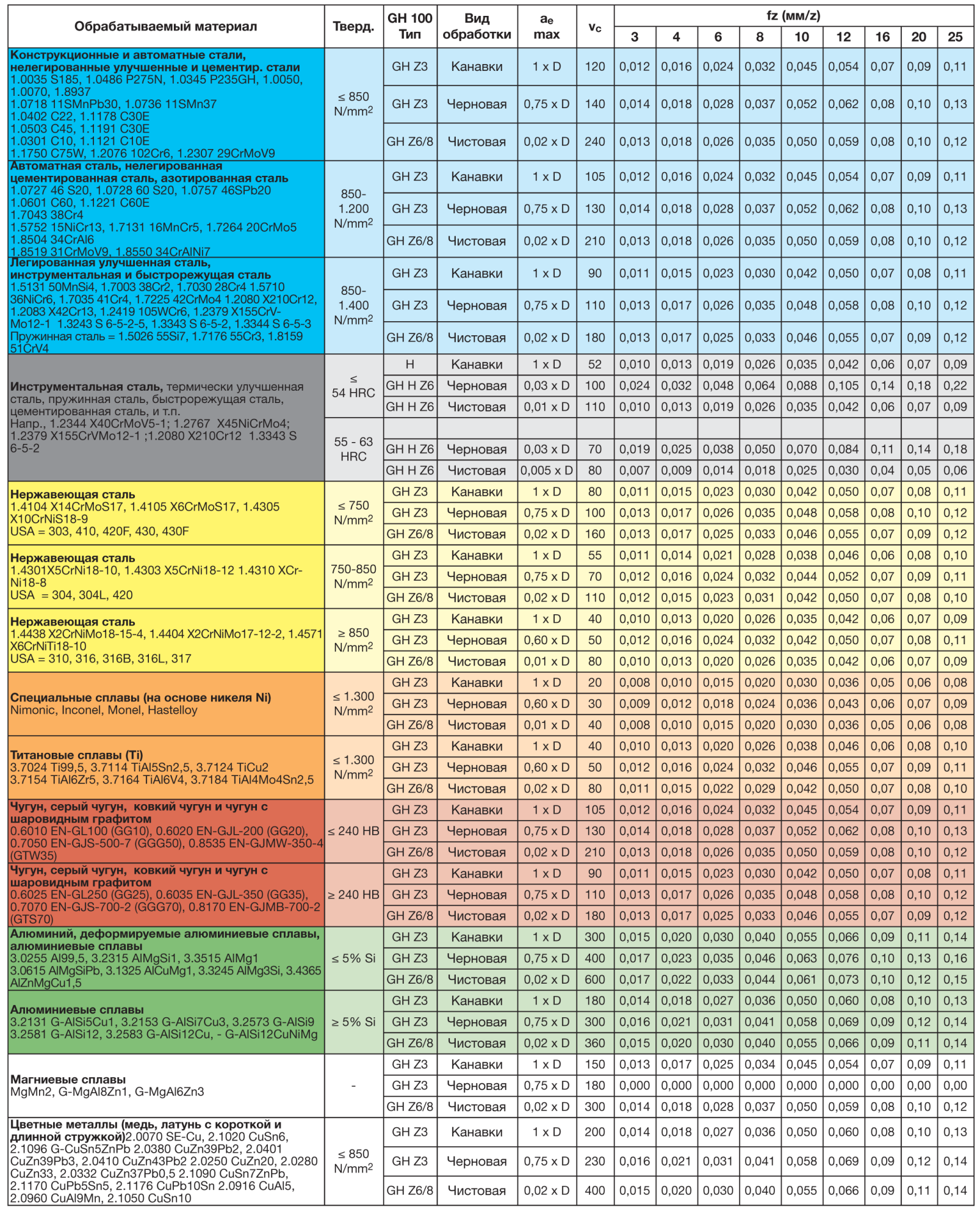 Материал заготовки, который может быть обработан наилучшим образом инструментом из сплава, рекомендованного производителем.