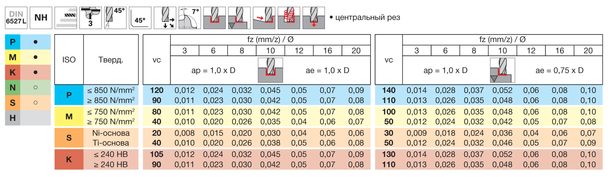 Материал заготовки, который может быть обработан наилучшим образом инструментом из сплава, рекомендованного производителем.Обрабатываемый материалPMKNS