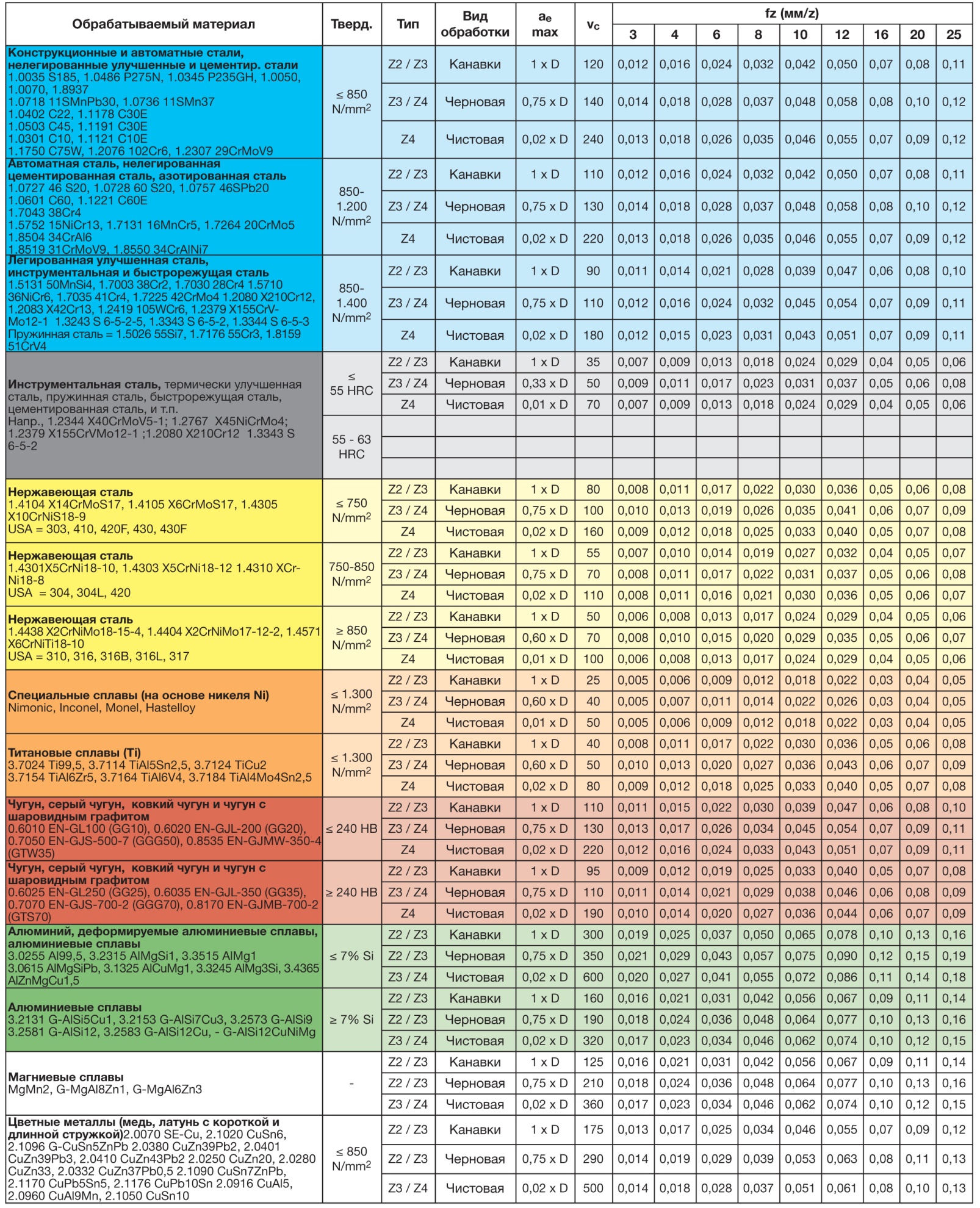 Материал заготовки, который может быть обработан наилучшим образом инструментом из сплава, рекомендованного производителем.