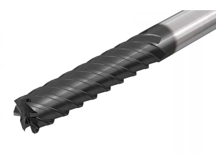 6-и зубые концевые фрезы для чистовой обработки твердых материалов до 65 HRC, угол подъема спирали 45°, большая длина