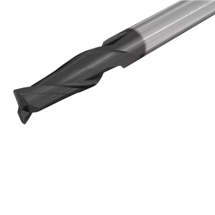 2-зубые концевые фрезы средней длины, углы подъёма спиралей 30° и 45°, для обработки пазов и сверления.