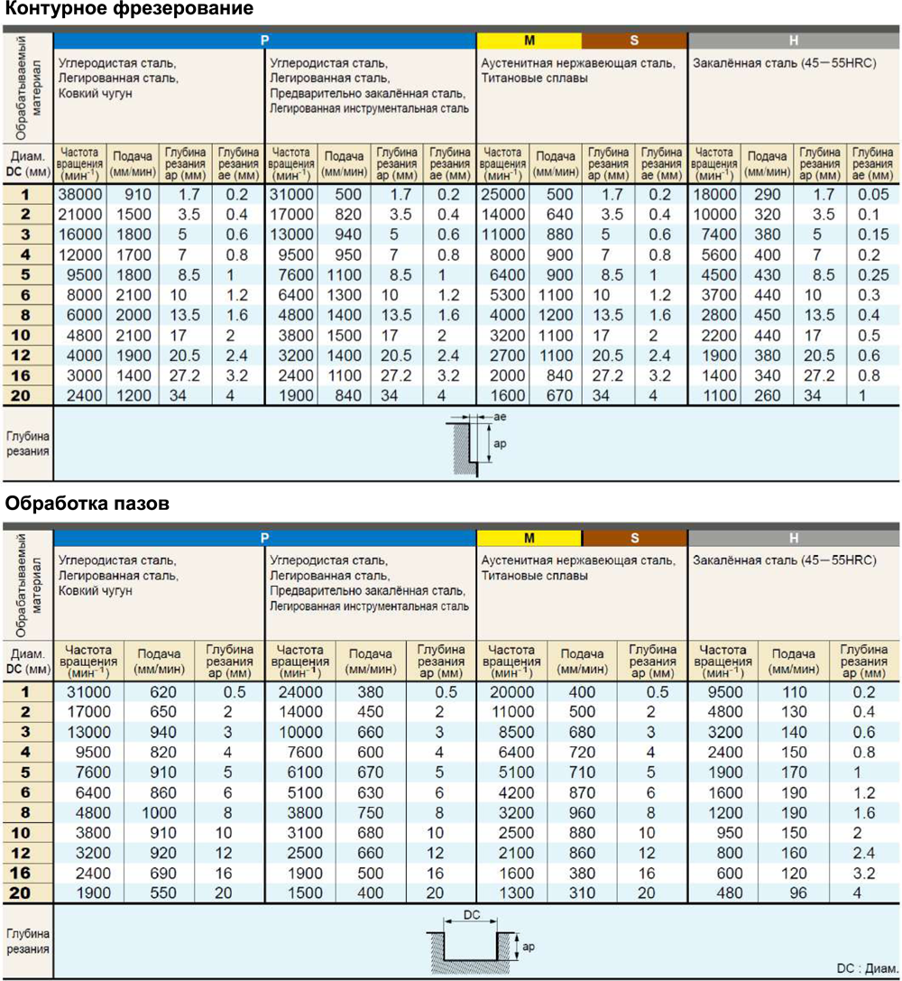 Большой угол наклона оптимален для работы с твердыми материалами, малый – с мягкими.Угол наклона спирали фрезы (°)37/40