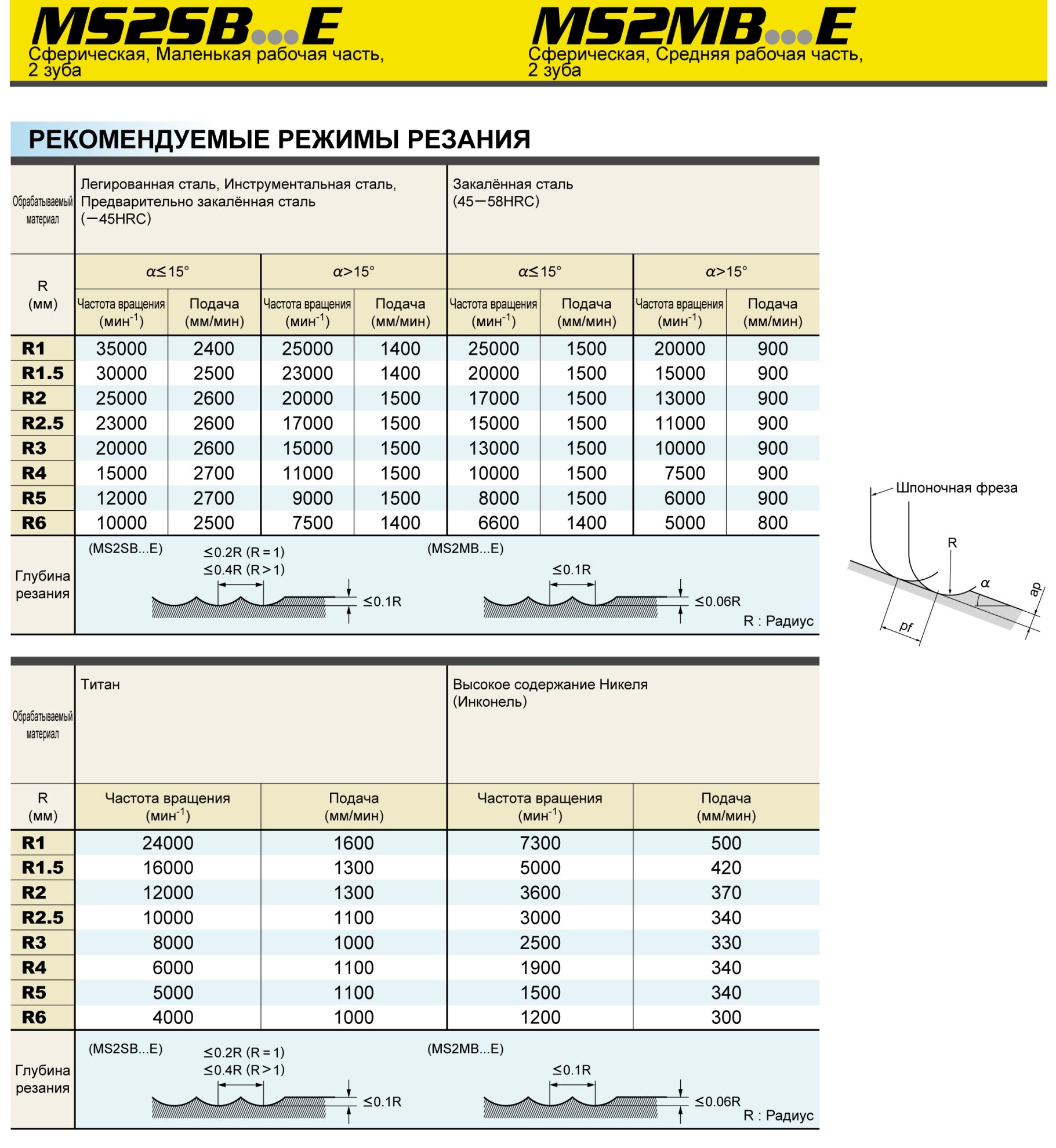Специфика крепления инструмента с учетом исполнения: насадной – посредством резьбового соединения, концевой – путем зажима хвостовика.Тип фрезыСферическая