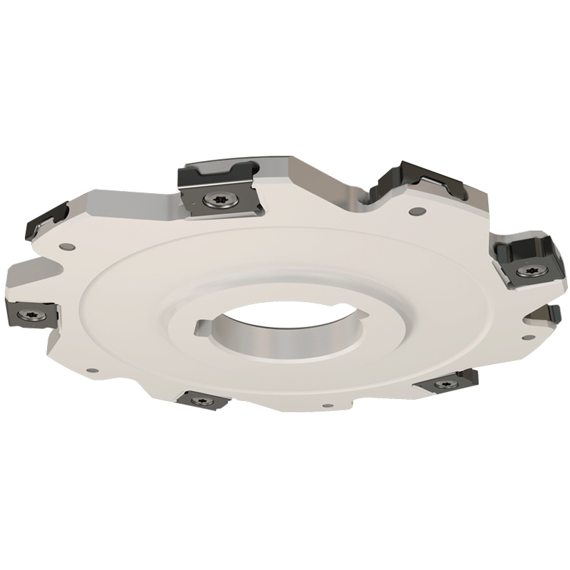 Дисковая канавочная и разрезная фреза (трехсторонняя резка) с тангенциально зажатыми пластинами с 4 режущими кромками.