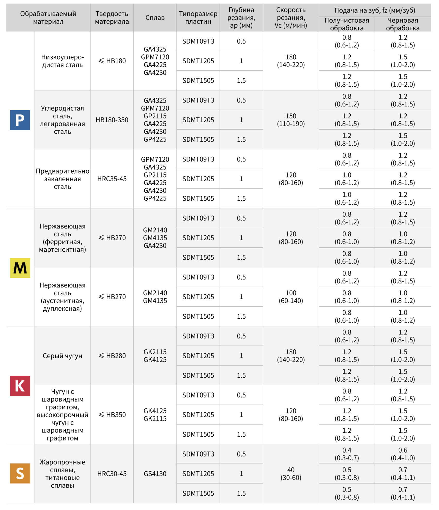 Рекомендуемые режимы резания