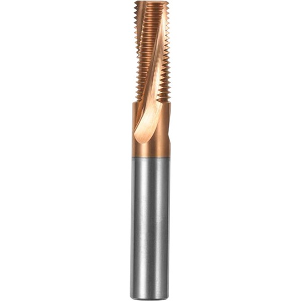 Твердосплавная трехвитковая резьбофреза с покрытием AlCrSiN имеет спиральную режущую кромку для плавной резки. Направление резьбы - правое. Внутренняя и наружная обработка. Допуск на Dh6 хвостовика 0/-0,005.
