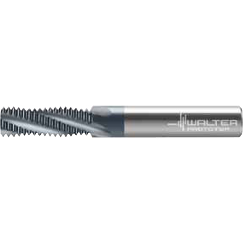 Твердосплавная резьбофреза из твердого сплава с 3-мя зубами. Хвостовик по DIN 6535 HA. Для внутренней резьбы, правое исполнение, спираль 27°.