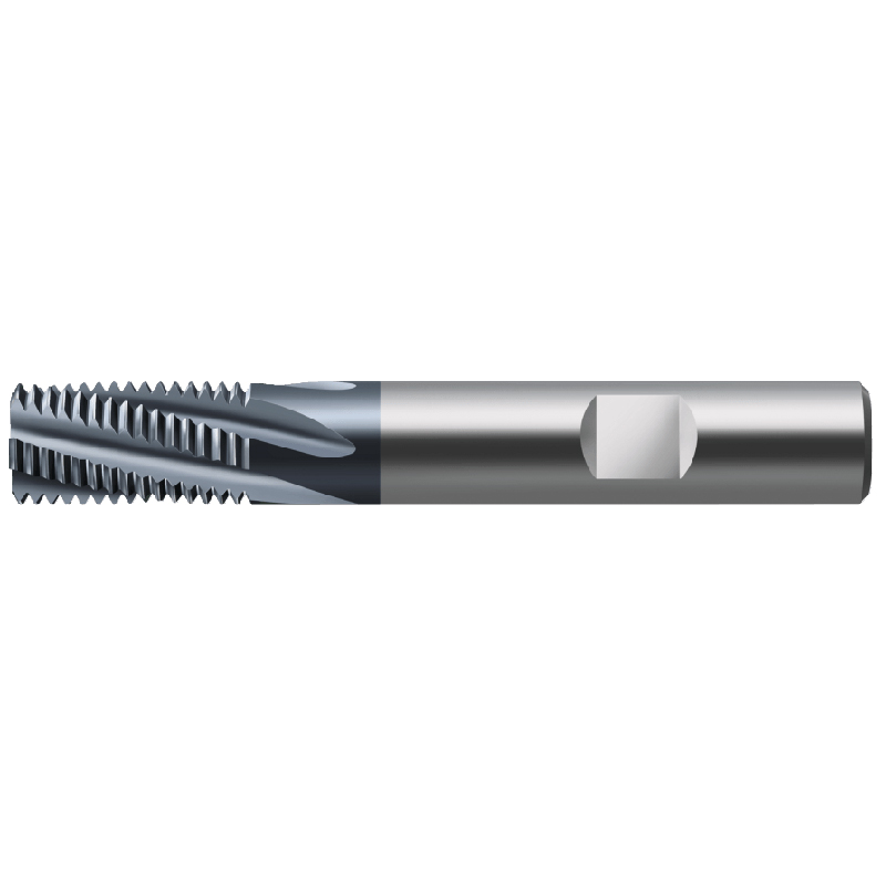 Резьбофреза из твердого сплава с 6-ю зубами. Угол подъёма винтовой канавки 20°. Резьбофреза применяется для обработки материалов до 48 HRC. Для наружной резьбы, правое исполнение.