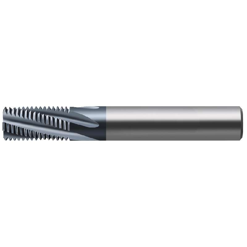 Резьбофреза из твердого сплава с 3-мя зубами. Угол подъёма винтовой канавки 27°. Резьбофреза применяется для обработки материалов до 48 HRC. Для внутренней резьбы, правое исполнение.