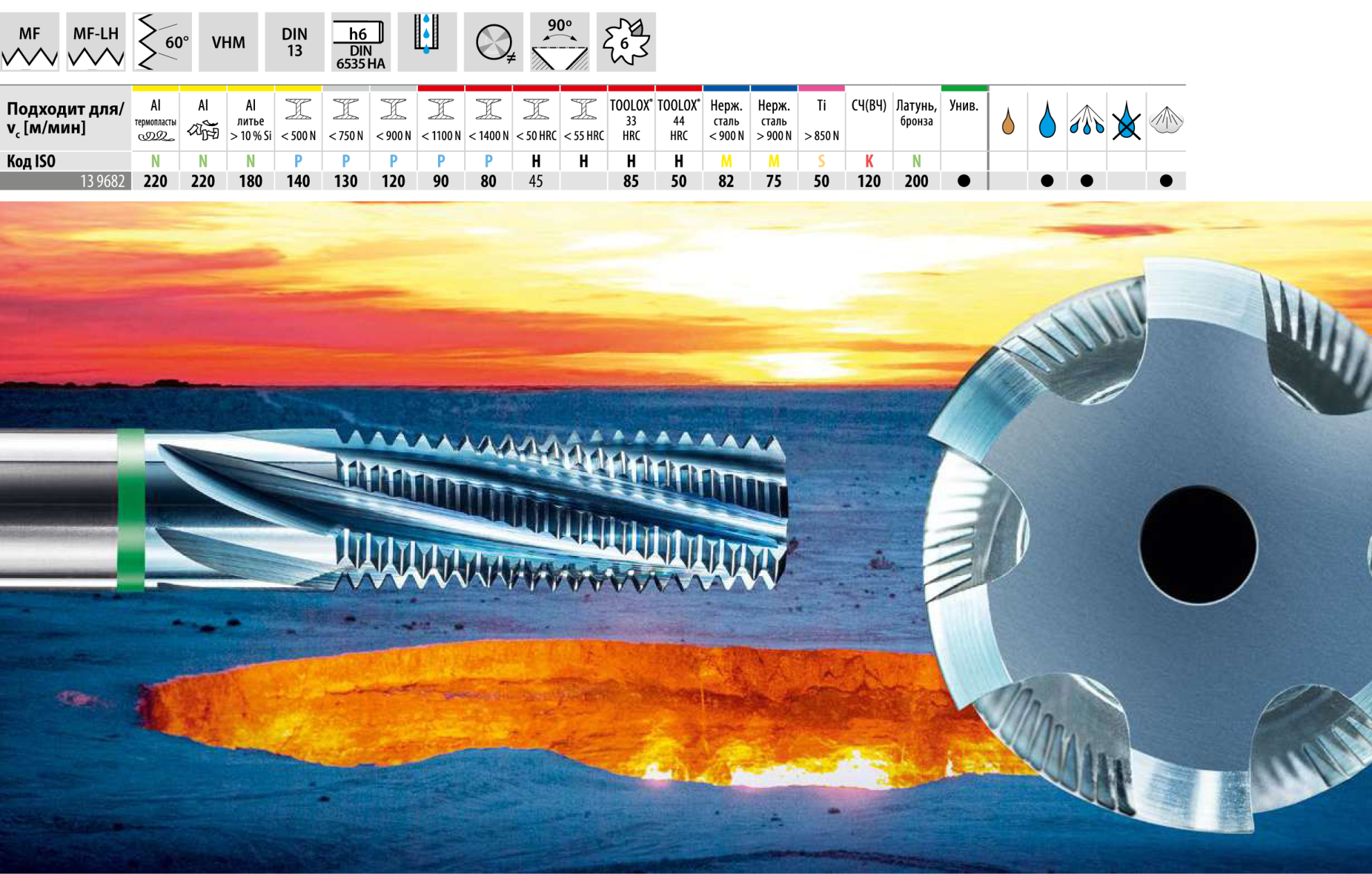 Преимущество: Зенкующая ступень со стороны хвостовика для зенкования на 90°, для зенкования и резьбофрезерования за один рабочий ход.