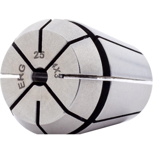 Резьбонарезная цанга ER25G предназначена для фиксации машинно-ручных метчиков (стандарт ISO529), используется для нарезания резьбы M4 в отверстиях. Цанги ER-G изготовлены из специального эластичного стального материала 65Mn. Величина биения: 0.015 мм.