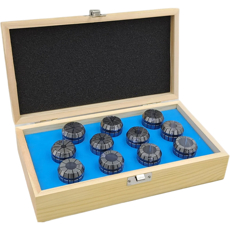 Цанги ER изготовлены из специального эластичного стального материала 65Mn. Мощная фиксация, высокая точность. Используется для растачивания, фрезерования, сверления, нарезания резьбы, шлифовки, гравировки и т. д. Точность биения: 0,008 мм. В комплекте 11 цанг размером от 4 до 20 мм.