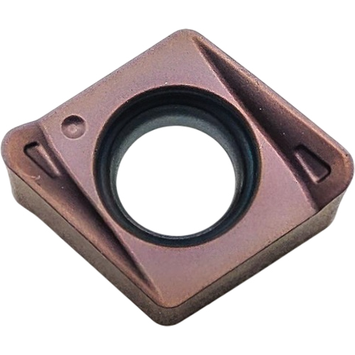 Твердый сплав на основе вольфрама с PVD-покрытием. Покрытие - медное (TiAlSiN). Условия резания плавные, прерывистые.