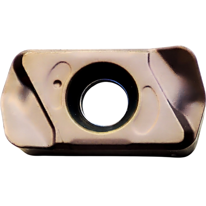 Твердый сплав на основе вольфрама с PVD-покрытием. Покрытие - медное (TiAlSiN). Условия резания плавные, прерывистые.