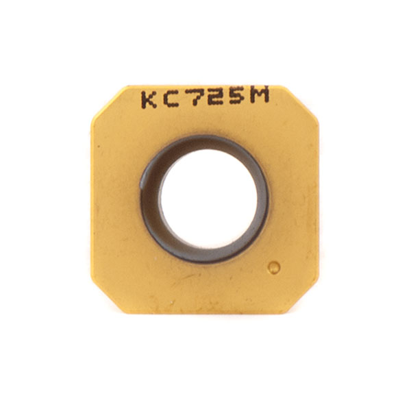 Твердосплавная сталь с улучшенным PVD-покрытием TiAlN. KC725M - это высокопроизводительная марка для фрезерования стали, нержавеющей стали и ковкого чугуна. Хорошая устойчивость основы к тепловым ударам делает эту марку идеальной для сухой и влажной обработки. Предназначена для общей и тяжелой обработки.