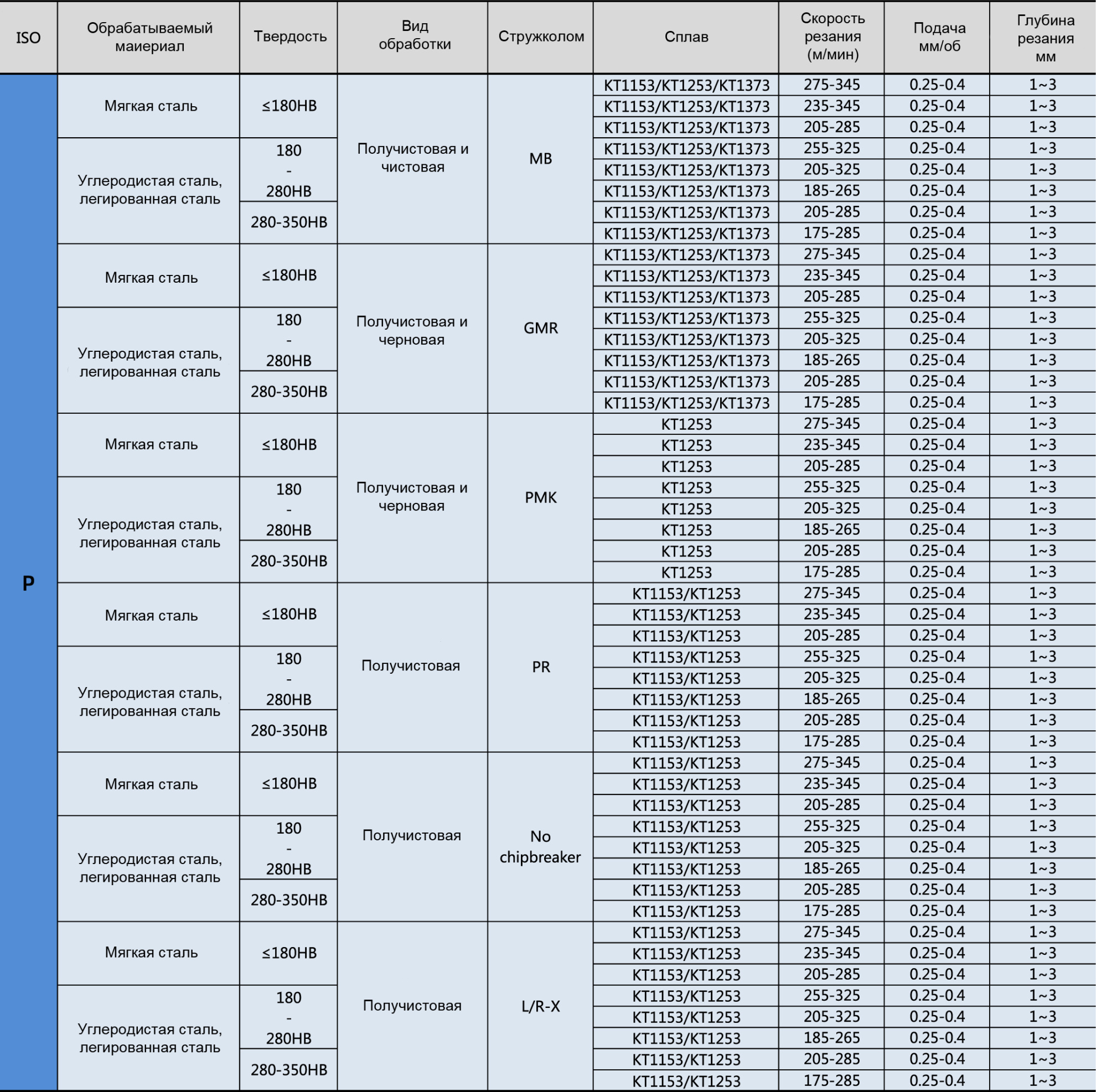 Материал заготовки, который может быть обработан наилучшим образом инструментом из сплава, рекомендованного производителем.Обрабатываемый материалP