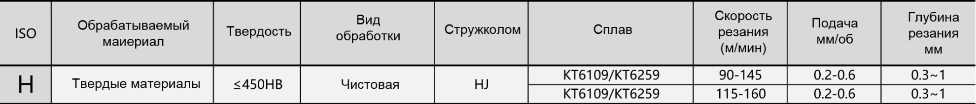 Материал заготовки, который может быть обработан наилучшим образом инструментом из сплава, рекомендованного производителем.Обрабатываемый материалH