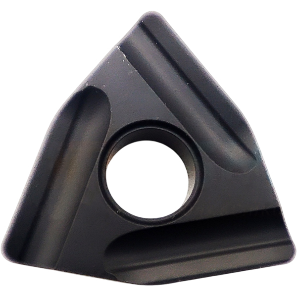 Твердый сплав из вольфрама с CVD-покрытием. Покрытие - черное (MT-TiCN+Al2O3) Условия резания прерывистые.