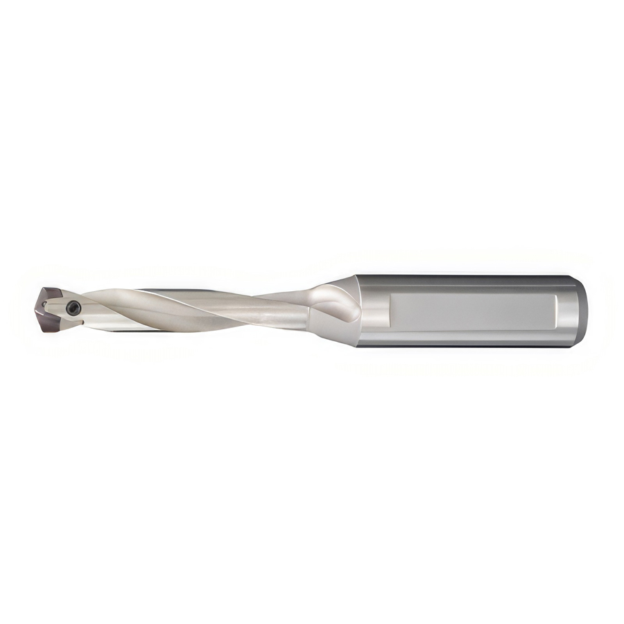 Изогнутая конструкция режущей кромки для качественного контроля стружки. Очень жесткая система зажима обеспечивает стабильность и надежность при сверлении отверстий малого диаметра.