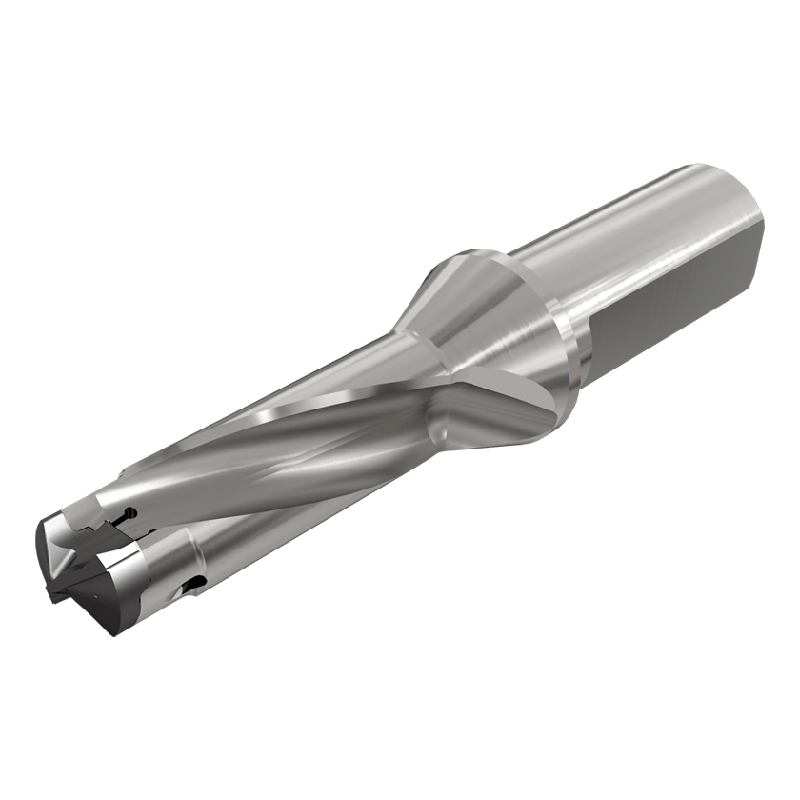 Корпус сверла со сменными головками, внутренними отверстиями для охлаждающей жидкости и одним плоским хвостовиком. Глубина сверления: 3xD.