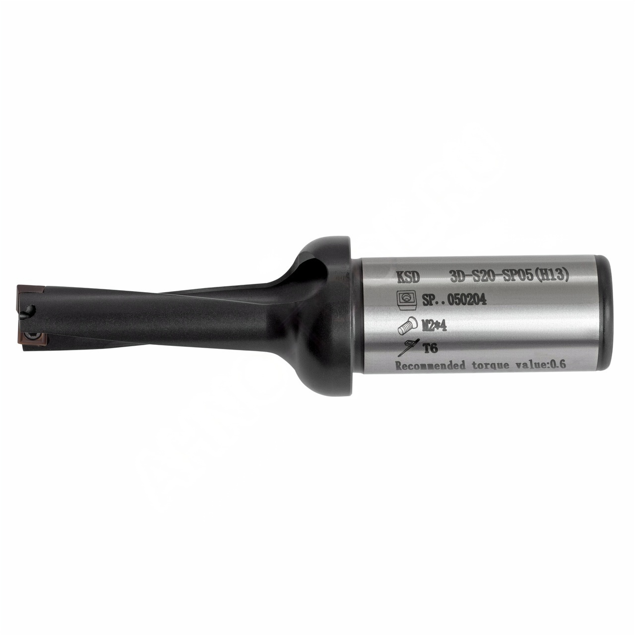 Высокопроизводительное сверло KSD с внутренним подводом СОЖ оснащенное специальной твердосплавной пластиной SP с задним углом 11 градусов. Пластина имеет острую кромку, делая процесс сверления более эффективным и точным.
