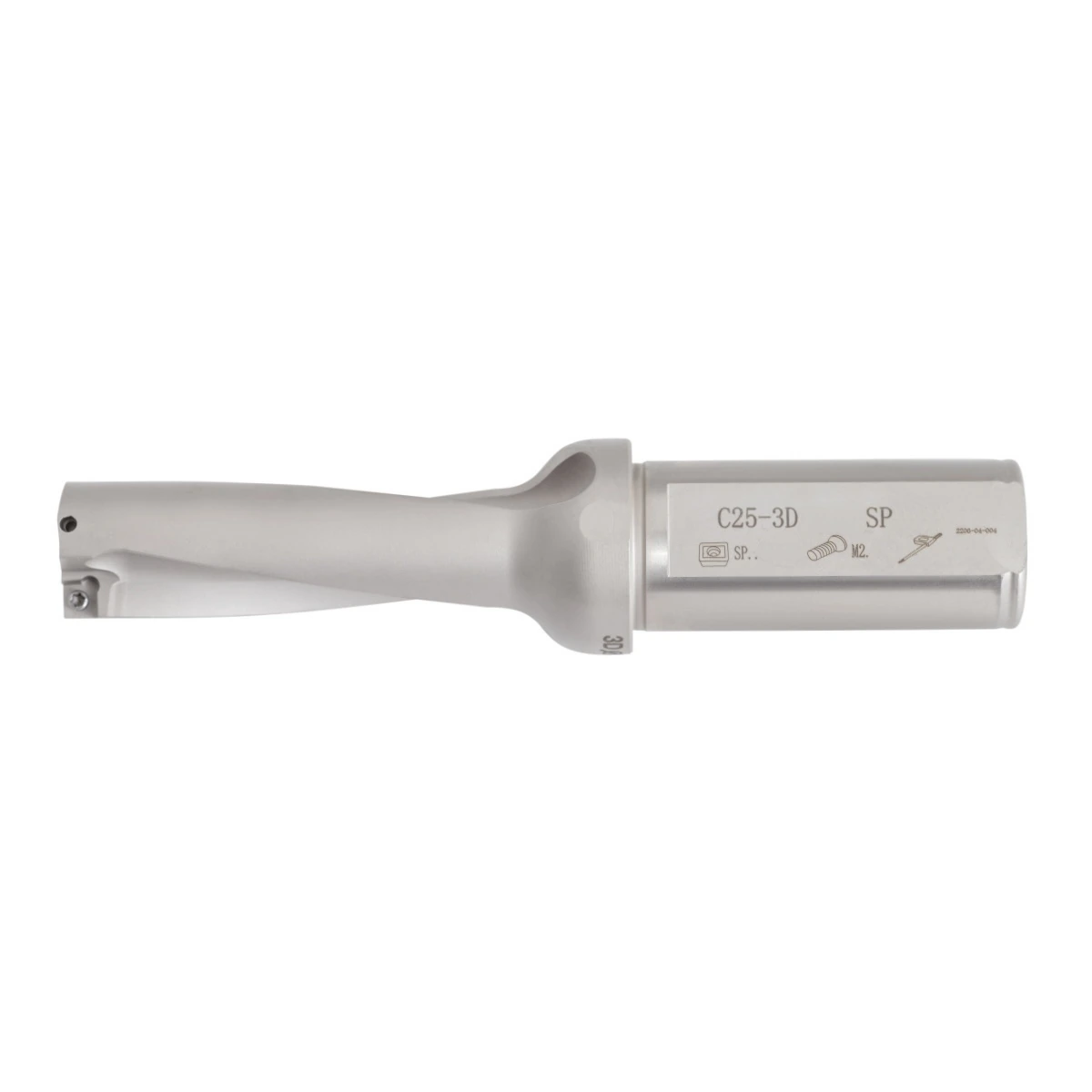 Корпусное сверло с внутренним подводом СОЖ оснащенное специальной квадратной твердосплавной пластиной с задним углом 11 градусов. Пластина имеет острую кромку, делая процесс сверления более эффективным и точным.