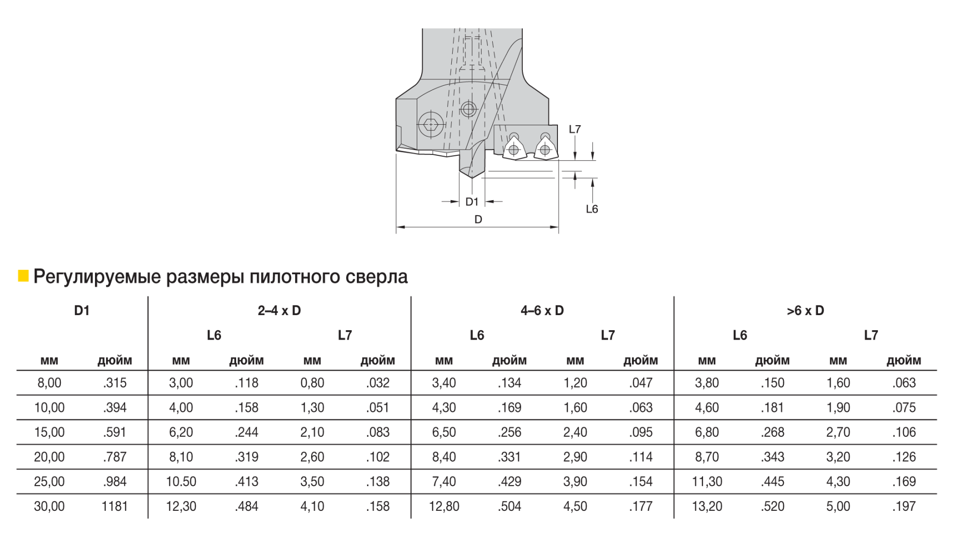 Внешний диаметр инструмента, определяющий размерность формируемого отверстия.Диаметр, мм (D)10