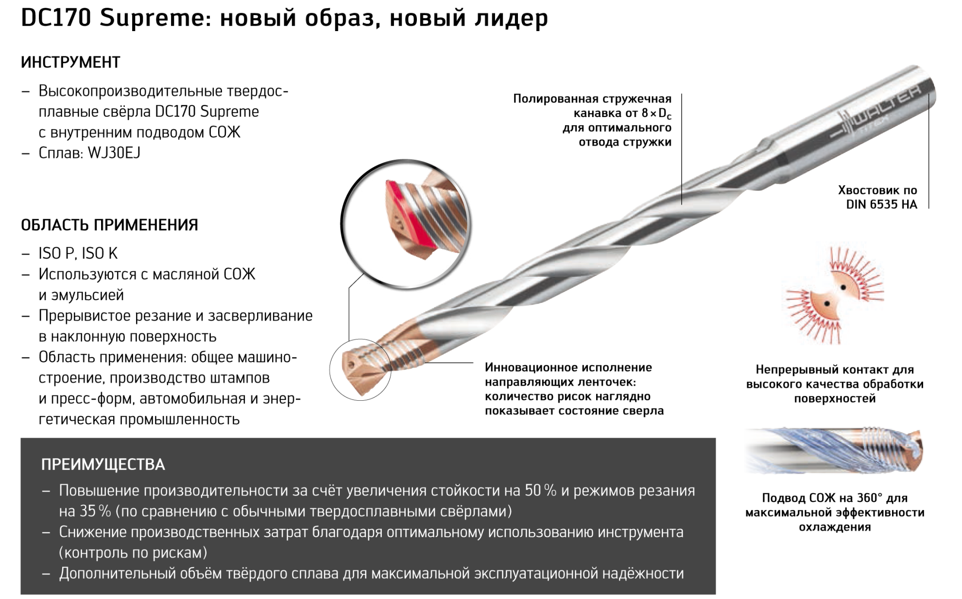 Сверла твердосплавные DC170 Supreme с внутренним подводом СОЖ