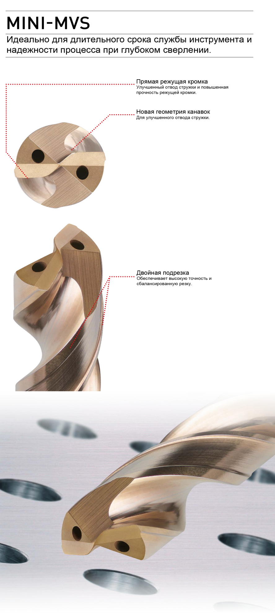 Прямая режущая кромка с улучшенным отводом стружки и повышенной прочностью. Двойная ленточка Обеспечивает сверлу малого диаметра оптимальную балансировку и точность.